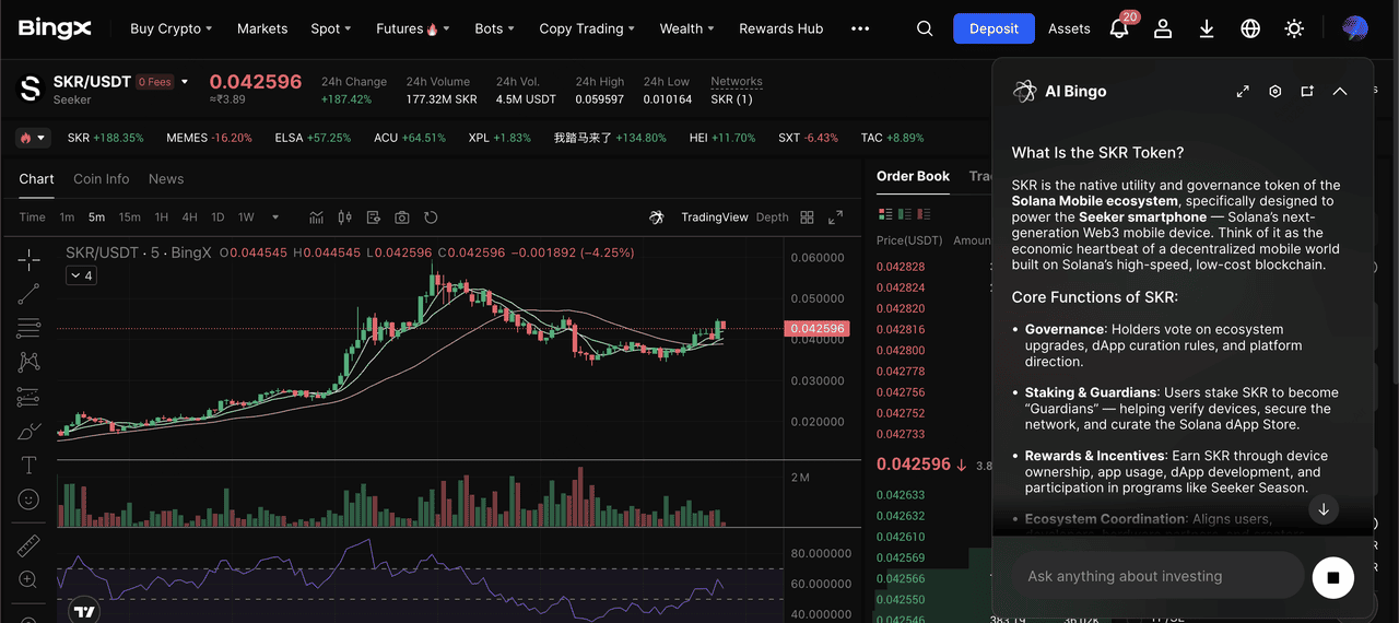 Par de trading SKR/USDT no mercado spot alimentado pelos insights da BingX AI