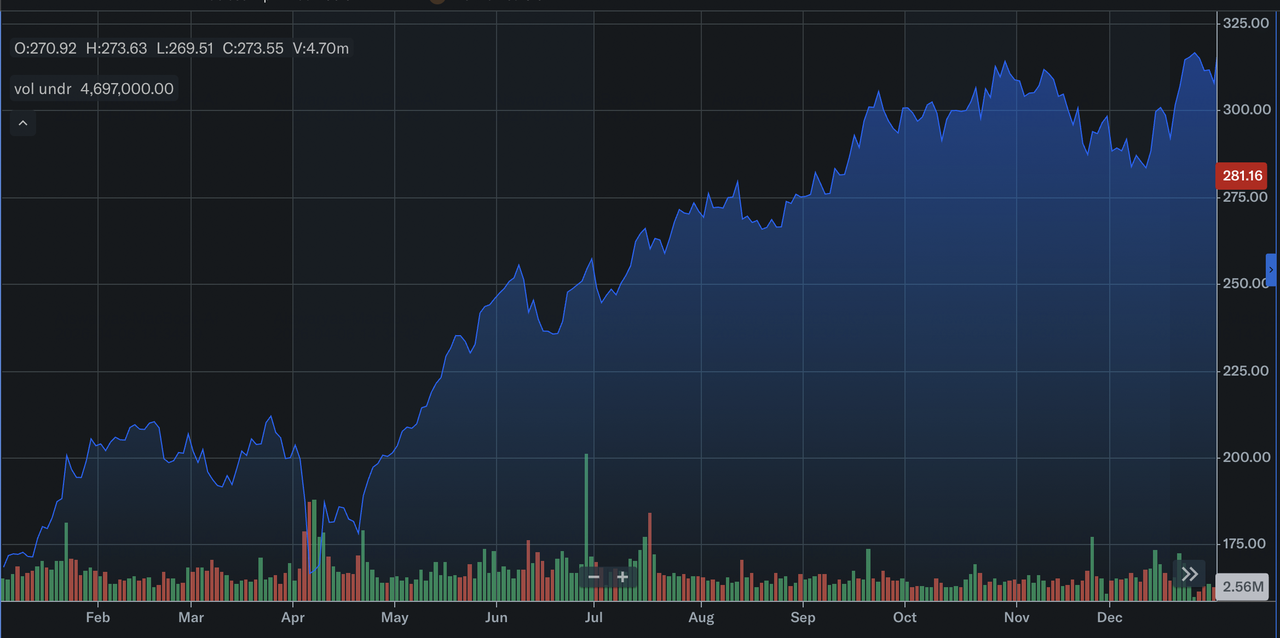 Динамика акций GE Aerospace (GE) в 2025 году | Источник: Yahoo Finance
