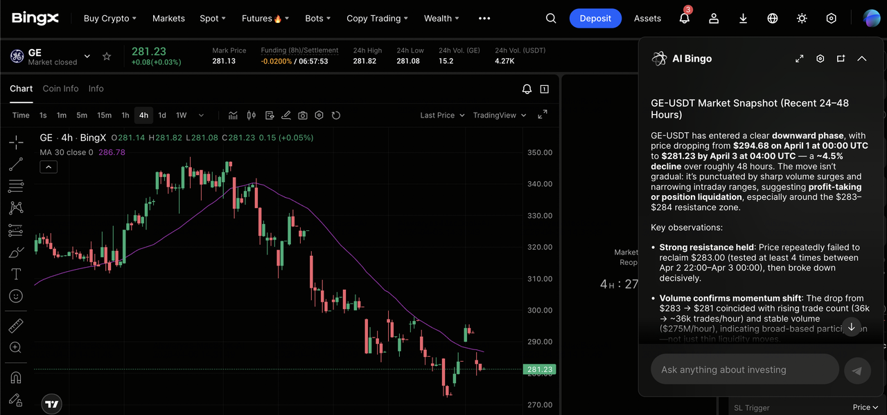 Максимизируйте свой торговый потенциал, используя продвинутые инструменты TradFi от BingX и инсайты BingX AI для навигации по волатильности прибыли GE.