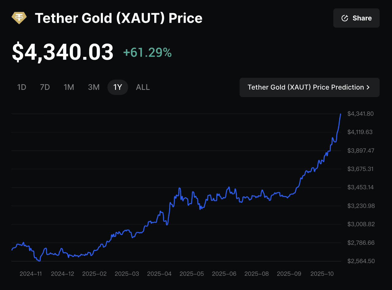 Общая рыночная капитализация криптовалют, обеспеченных золотом, превысила $3 миллиарда в октябре 2025 года, что совпало с достижением спотовыми ценами на золото рекордного максимума в $4325 за унцию. Поскольку инвесторы ищут стабильности и проверяемых ончейн-активов, эти проекты определяют следующую фазу токенизации реальных активов.