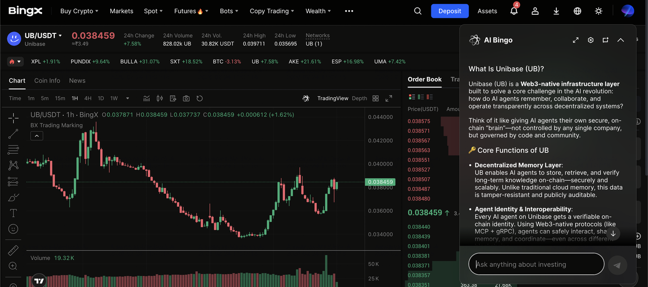 Как торговать Unibase (UB) на BingX