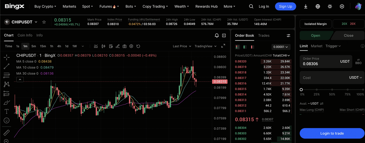 С запуском бессрочных фьючерсов CHIPUSDT пользователи BingX могут торговать токеном CHIP с институциональным уровнем ликвидности и кредитным плечом.