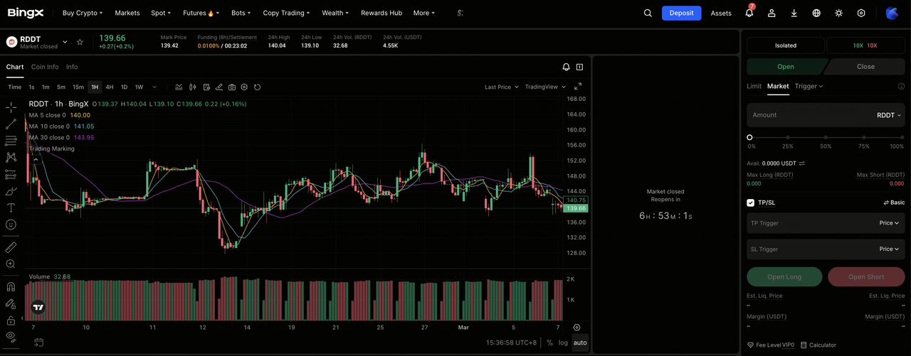 วิธีเทรดฟิวเจอร์สหุ้น Reddit (RDDT) บน BingX TradFi