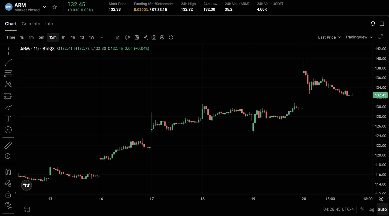 Безстрокові ф'ючерси акцій Arm Holdings на ф'ючерсному ринку з інсайтами BingX AI