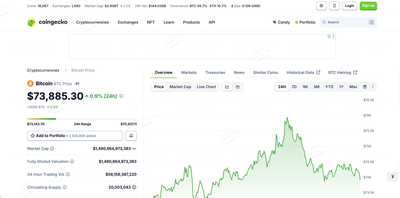 Відстеження ціни Bitcoin в реальному часі на CoinGecko
