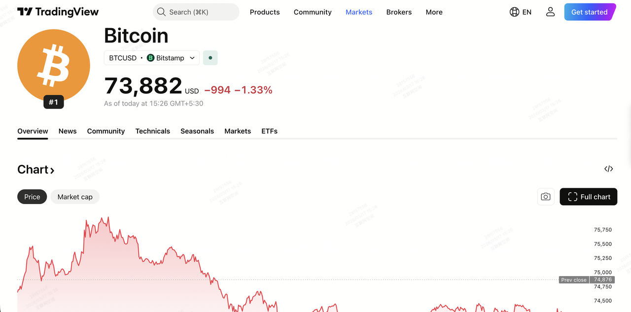 Відстеження ціни Bitcoin в реальному часі та метрик на TradingView
