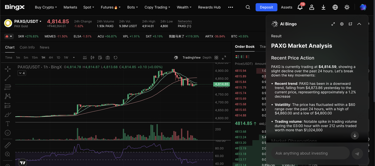 Торгова пара PAXG/USDT на спотовому ринку, підтримувана інсайтами BingX AI