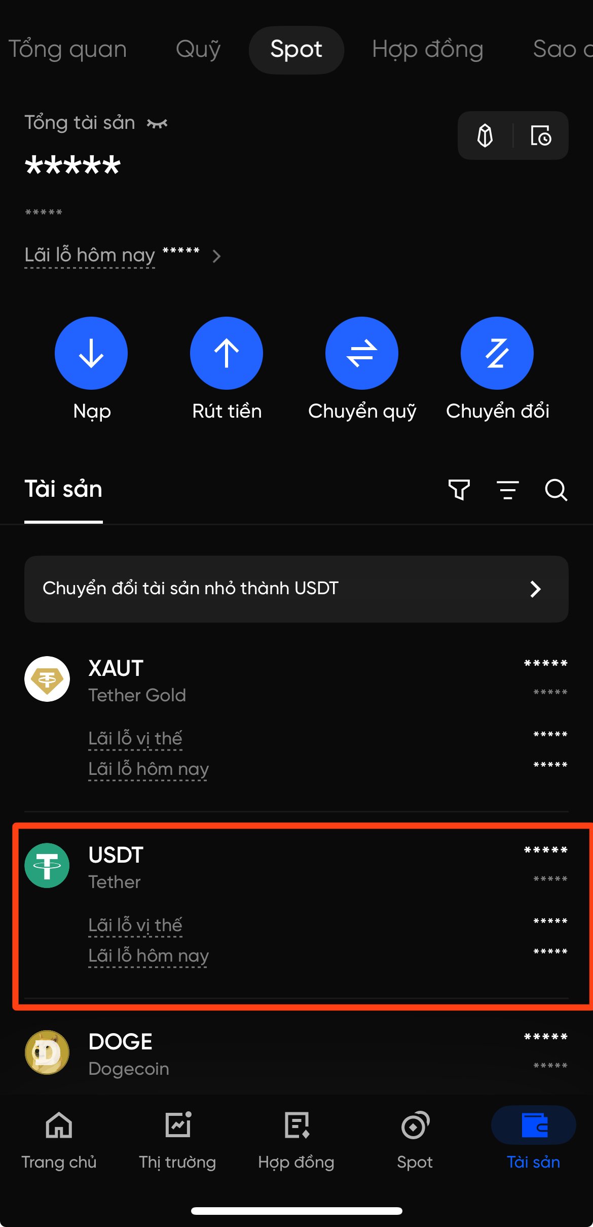 Bước 1: Đăng nhập vào tài khoản BingX, nạp USDT vào ví giao dịch.