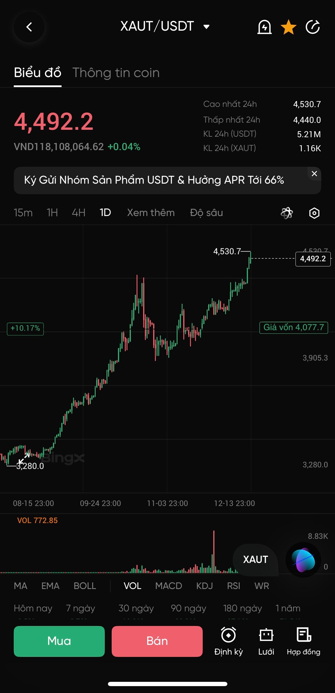 Với tính thanh khoản cao, bạn có thể dễ dàng Trade XAUT/USDT trên BingX để chốt lời theo biến động giá vàng thời gian thực.