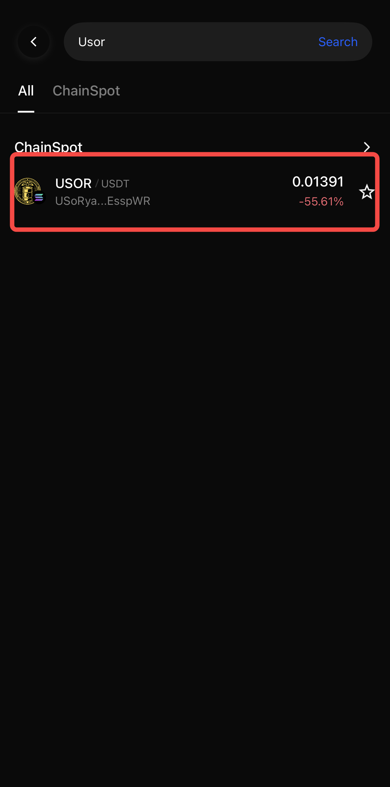 1. Locate USOR: Tap the search icon in the top right. Enter "USOR" and select the official token. You can also find it under the "Trending" or "Solana" categories if it is currently high-volume.