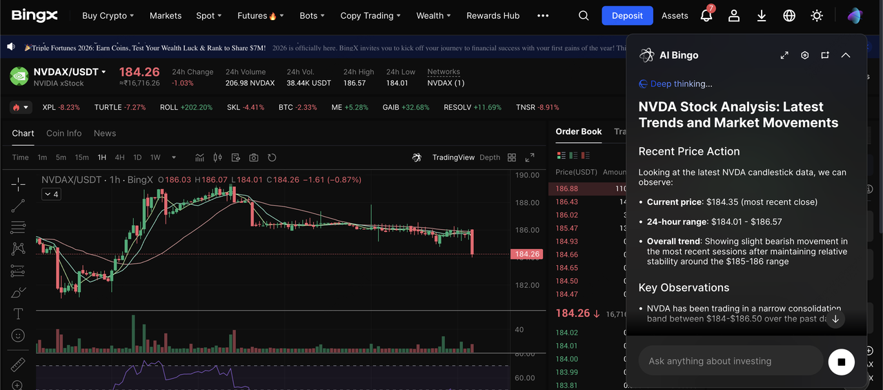 NVDAX/USDT cổ phiếu được token hóa trên thị trường spot được hỗ trợ bởi BingX AI