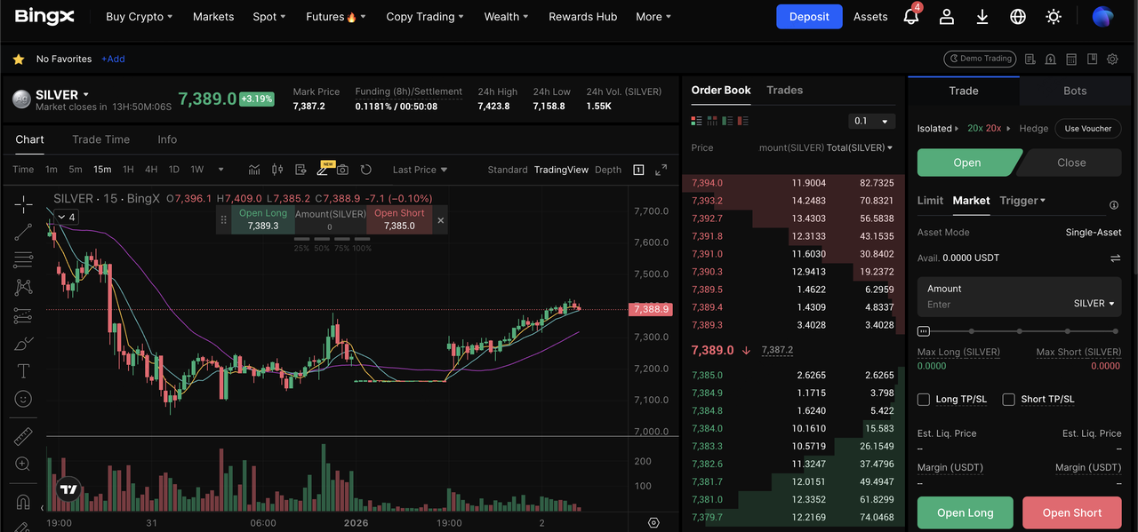 在 BingX 上用加密貨幣交易白銀期貨