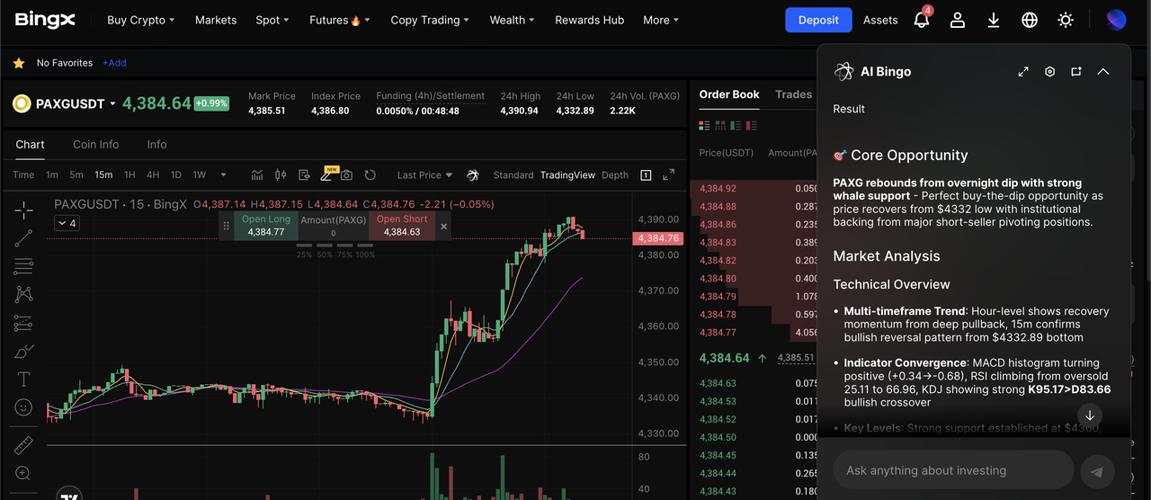 由 BingX AI 驅動的期貨市場 PAXG/USDT 永續合約