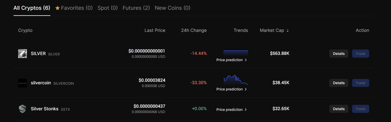 在BingX的現貨市場上,用戶可以交易多種黃金主題和白銀支持的加密貨幣,這些加密貨幣反映了貴金屬的真實價值: