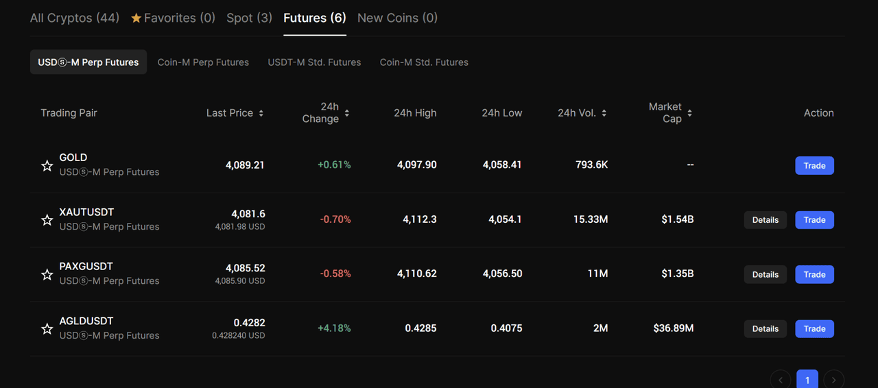 • XAUT/USDT & PAXG/USDT 合約:機構級黃金合約,提供靈活槓桿和快速執行。